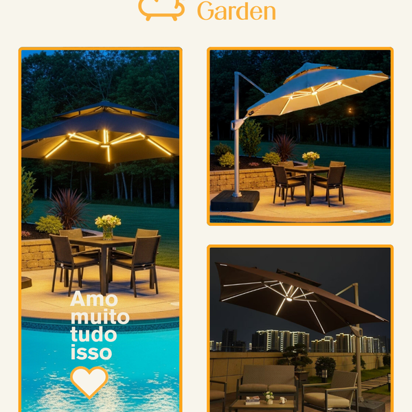 Sempre sonhei em ter um espaço confortável no jardim para aproveitar com minha família, mas nunca encontrava móveis que fossem bonitos e resistentes ao tempo. Quando comprei o ombrelone fiquei impressionada com a qualidade! A entrega foi rápida, o atendimento foi super atencioso e o resultado final ficou incrível. Agora, meus finais de semana vão ser sempre ao ar livre!